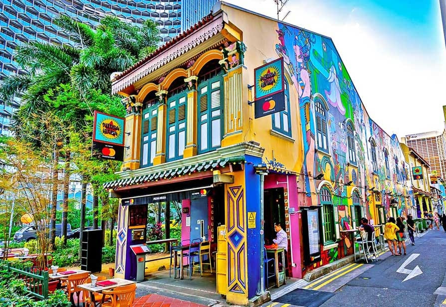 Kampong Glam nổi bật với kiến trúc Hồi giáo và phong cách đường phố hiện đại.